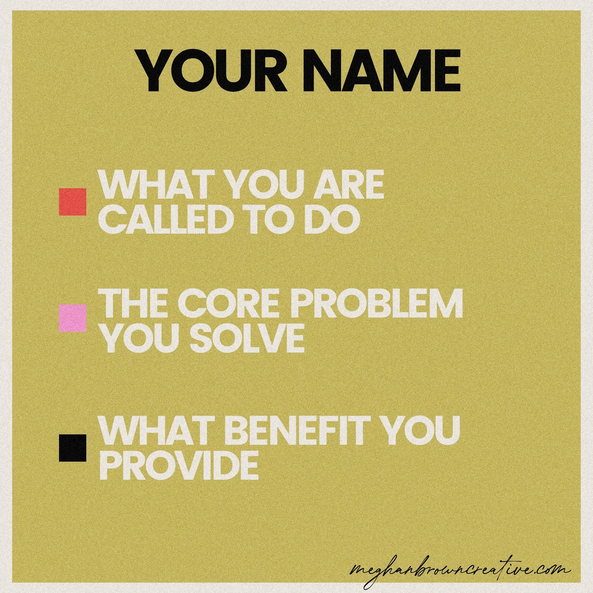 While not always a literal name, this refers to the essence of what you're called to do. What is the core problem you solve, or the unique benefit you provide? Does your business name, tagline, or mission statement truly reflect this core calling?